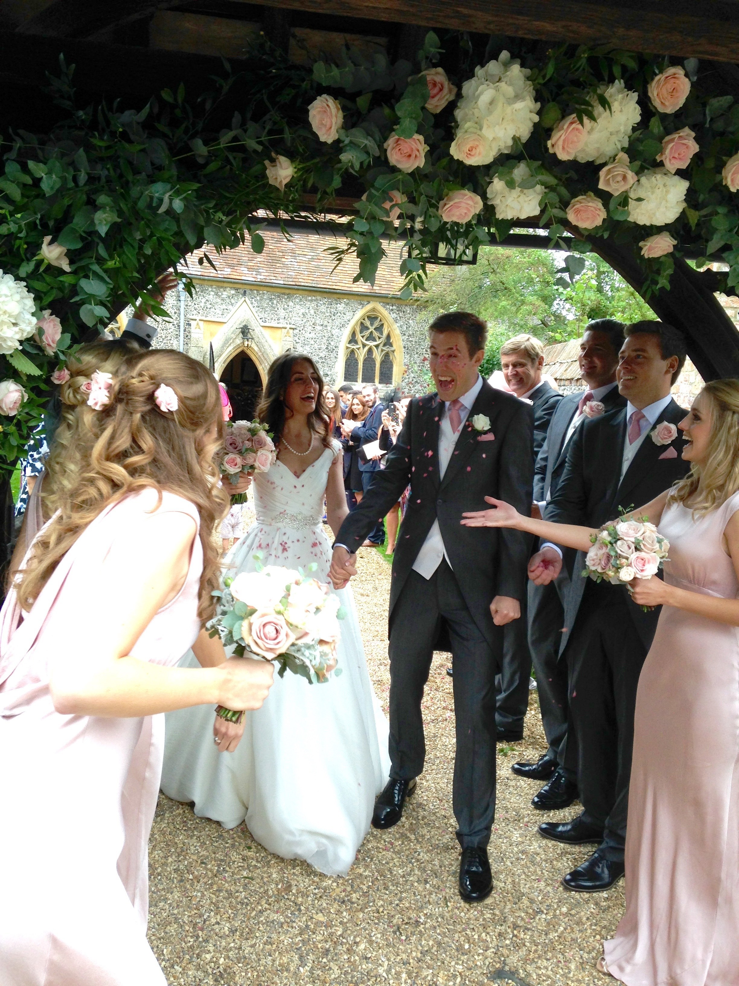 Whitchurch on Thames – Wedding through Lychgate. Mr & Mrs Dawson